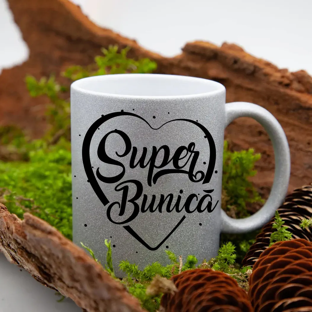 Alege să oferi un cadou inspirat și creativ – o cană personalizată GLITTER cu sclipici, cu nume sau un mesaj unic poate fi un cadou perfect pentru cineva special sau chiar pentru tine, îți poți face ziua mai frumoasă dacă savurezi cafeaua sau ceaiul din cana ta preferată. Îți oferim o gamă variată de culori din care să alegi pentru a le personaliza așa cum îți dorești. Iar dacă ai o idee nouă, noi te putem ajuta să personalizezi cana într-un mod unic, de aceea nu ezita să ne contactezi și împreună vom face cadoul perfect pentru tine sau pentru cei dragi.