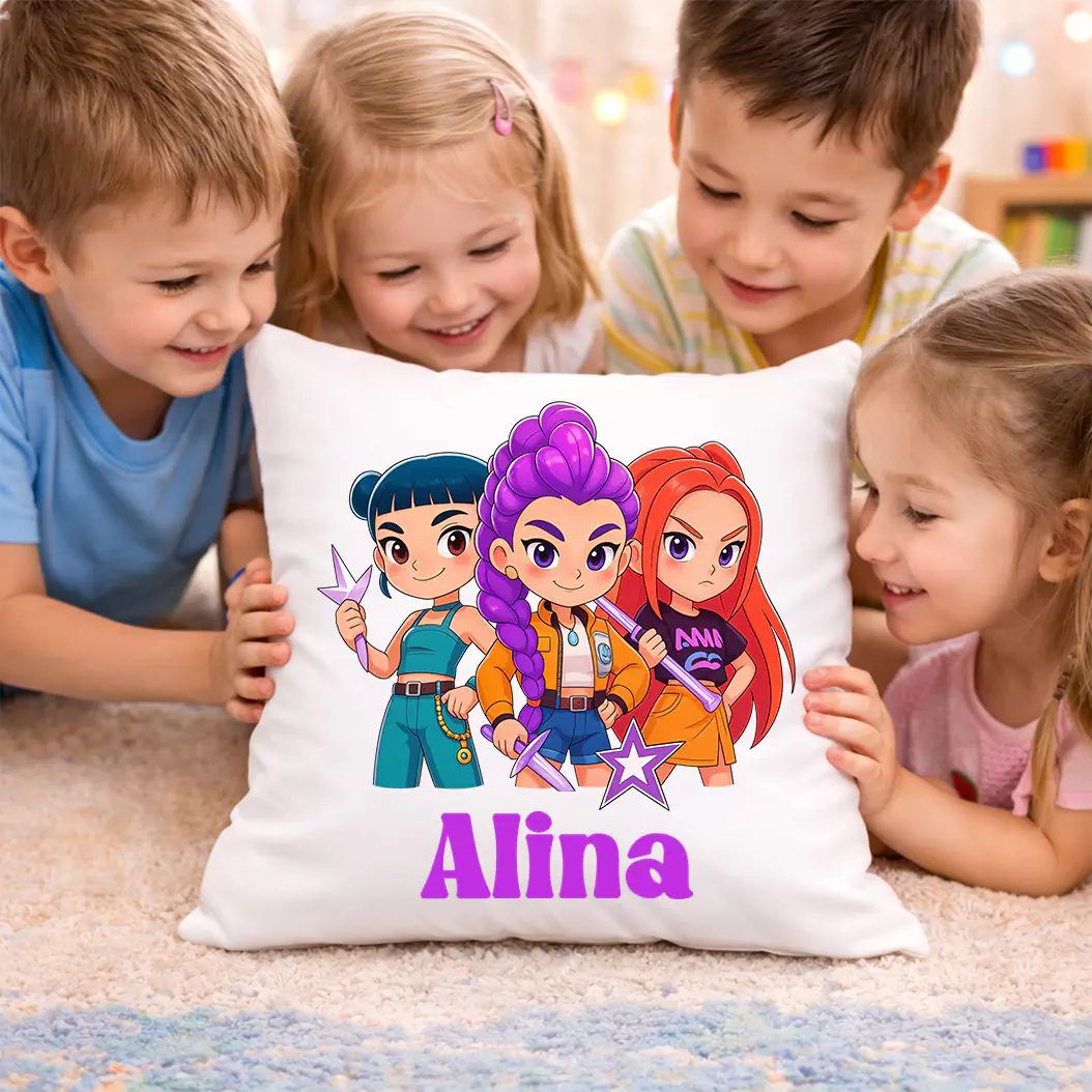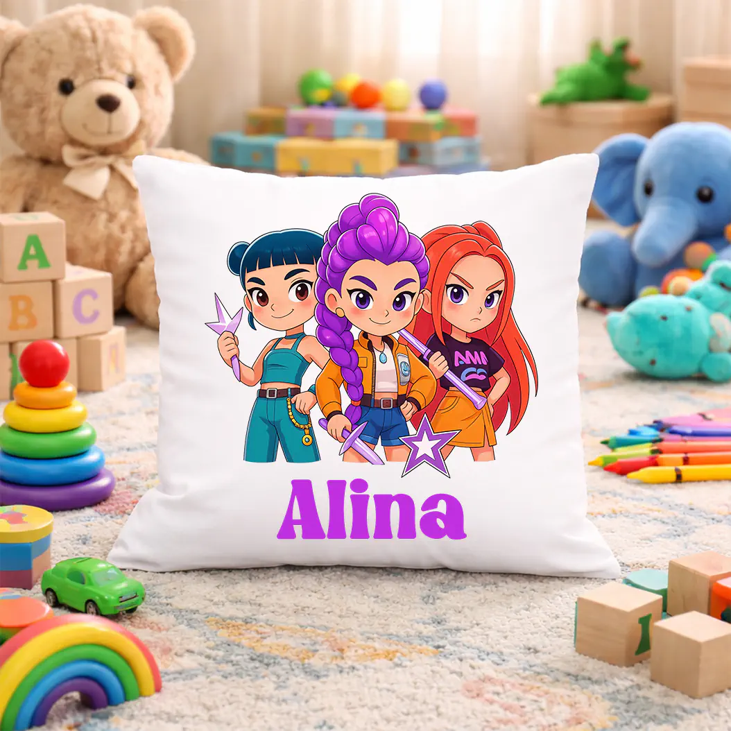 🛒 Comandă acum perna personalizată pentru copii K-Pop Demon Hunters și oferă-i copilului tău un produs creat special pentru el!